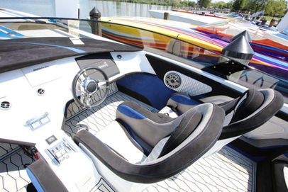 Originally built to supersede the 40 Classic for racing, it immediately became a success on the APBA Offshore circuit, winning its inaugural Key West Offshore Championship. Even a boat as large as the 46 found its way into the niche of top Cat in the Open and Superboat class. The evolution of the 46’s lamination schedule and sponson configuration was and still is a changing one. Imagine building a hull for 750hp Mercruisers with #6 drives to the same hull with a pair of 1650’s with #8 drives or, for that matter, turbines with surface drives or even a hull with 4 engines and 4 drives. The answer, of course, is that each hull is tailored to its engine/drive configuration through the use of variable sponson rake and tunnel width. But its only a little more work- right? Another variable in ALL Skaters is the amount of fuel any boat can carry. A successful tank design approved by the USCG allows us to build the tank as a structural member of the boat as well as damping device for rough water. Tanks of any reasonable size can therefore be built into any Skater.