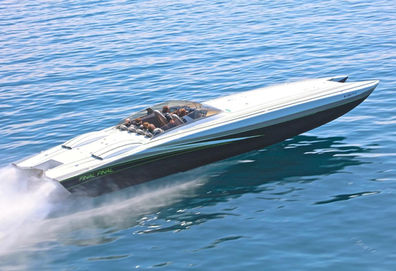 Originally built to supersede the 40 Classic for racing, it immediately became a success on the APBA Offshore circuit, winning its inaugural Key West Offshore Championship. Even a boat as large as the 46 found its way into the niche of top Cat in the Open and Superboat class. The evolution of the 46’s lamination schedule and sponson configuration was and still is a changing one. Imagine building a hull for 750hp Mercruisers with #6 drives to the same hull with a pair of 1650’s with #8 drives or, for that matter, turbines with surface drives or even a hull with 4 engines and 4 drives. The answer, of course, is that each hull is tailored to its engine/drive configuration through the use of variable sponson rake and tunnel width. But its only a little more work- right? Another variable in ALL Skaters is the amount of fuel any boat can carry. A successful tank design approved by the USCG allows us to build the tank as a structural member of the boat as well as damping device for rough water. Tanks of any reasonable size can therefore be built into any Skater.